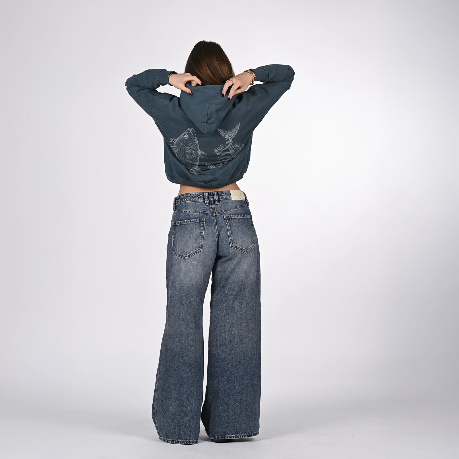 Life mirrored in motion. Two koi swimming apart — one alive, one remembered. Printed on a deep green hoodie. Express the unseen.