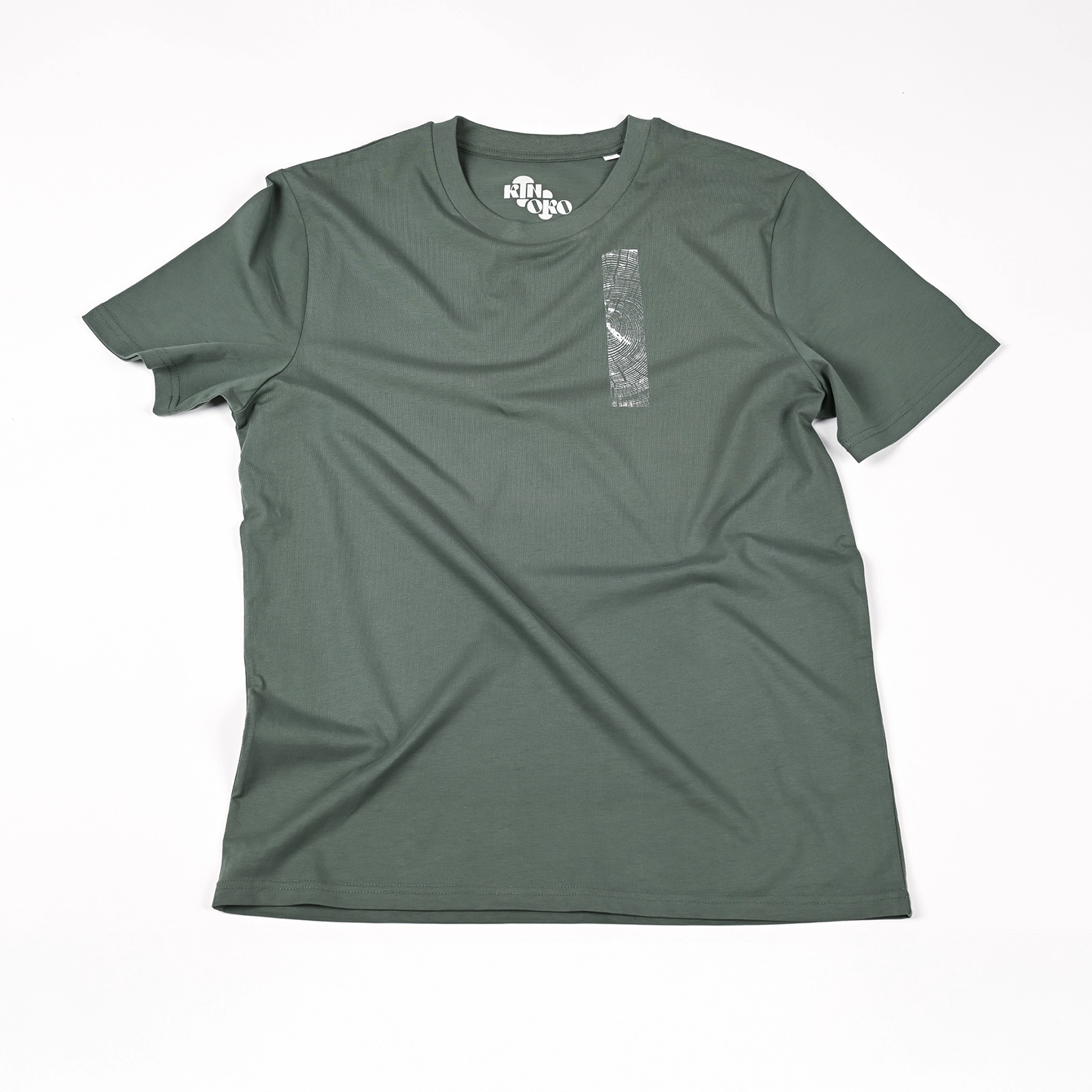 Stories written in growth. Rings of wood marking time, memory, and endurance. Printed on a deep green tee. Express the unseen.